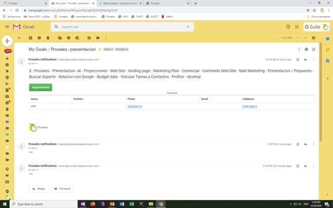 Con Prosales programe notificaciones y mensajes (e-mails).